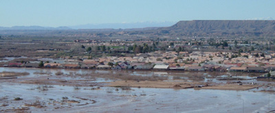 While we all lamented our hardships with the rain and wind on day one, the residents of the lower area near the Virgin River really had it tough. The 100-year flood caused evacuation of a large number of their homes. Jerry caught this photo from the golf course looking back to the inflow of the Virgin River.