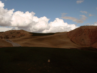 What a difference a day makes. Sunny cloudless skies with the temperature above fifty degrees. My playing partners included Babe Humphrey again, Don Hill, and Rudy Benevidez. Don was my draw partner the first day and believe it or not we won a low net prize. Just enough for a couple of beers. I took lots of digital photos and then accidentally deleted them all, so the only one I have is of the clubhouse. Fortunately my roommate, Jerry Davenport, took several so I give him credit for those, which follow.