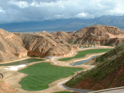We checked in at the Oasis Hotel and Casino at sundown and welcomed others of our group of 51 for a while at a reception and organization get together. I roomed with Jerry, and we got to bed early in anticipation of getting to the Casa Blanca golf course early in the morning but the destination had changed. That golf course was under water so we were directed to a new course, Falcon Ridge.