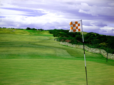 THE APPROACH TO NUMBER THREE ON THE KINGS BARNS GOLF COURSE