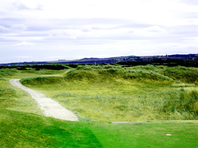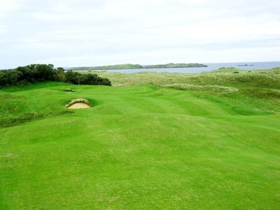 THE APPROACH TO NUMBER THIRTEEN ON THE ROYAL PORTRUSH GOLF COURSE
