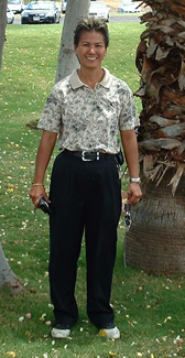 | The course SeniorFriendlyGolf SFG-rate is 7.2, however, since there is no senior tee boxes it plays to an SFG-6.2 off the White tees. Ladies red will be 7.2 and Championship 5.2. If you know how to interpret the USGA ratings they are as follows: Blue Championship 70.6/124, White 68.8/117, Red 70.0/118. The Director of golf is Sherrie Golden. She is the only LPGA director of golf on the island. The course provides free lessons; you pay for the golf balls at the range, on Monday and Thursday at 6:00 PM. Elleair is acknowledged as one of Maui's best golf values at $90, $70 twilight. If you were to build a luxury resort next to Elleair`you could double the green fees. | ![]() SHERRIE GOLDEN LPGA, Director of Golf |