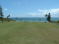 The first hole is a five par and a slice will put you on a hillside of hurt. Hurt because you will neither be able to find your ball nor have a chance to hit out. There is plenty of room for a modest fade and if you aim a bit to the left you can even let your slice go. The best thing about the hole is the view. Spectacular! Lots of green and lots of blue ocean in the distance.