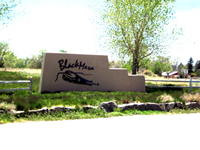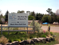 When you take State Road 399 west you come to the entrance to the Black Mesa Golf Club. In 2004, the last time I was here, there was only a wooden sign. It has been replaced with an artfully designed stucco fixture. They are also to be commended for the simple wooden sign next to theirs. It's for "The First Tee" program. www.thefirsttee.org. While speaking of signs, the tee marker signs are very impressive. They are carved out of black onyx stone and highly polished. You'll see them in the slide show to follow.