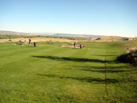 As you drive up the club road, you go deeper into the desert and finally arrive at the clubhouse. Once again, not that impressive. It is of simple design. You might even say it is cute. Then all at once Black Mesa Golf Club gets serious about golf. Across the road from the clubhouse is one of the most extensive practice and training areas I have seen. The driving range is multi-level AND can probably support close to 50 players at a time. There is a bunker and pitching area down the road that is huge and two excellent putting greens with great surfaces are positioned at the driving range and adjacent to the clubhouse.