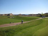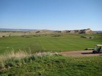 When you play Black Mesa you will be well advised of the following. The close areas around bunkers are in themselves daunting. Your ball will not roll into the sand. It will hide in rather deep grass. In most cases you will be able to find errant shots that fly away from the fairway, and you can either try to blast them back onto the well kept fairway grass or take a stroke and throw your ball back. You will usually return to the fairway with a few extra balls others have left out there. You will be challenged with water hazards on only two holes. However, if you top the ball often or cannot get ball flight into the air when required, you are not going to have a good day. On second thought, you may, just because of the unusual beauty and awesomeness (if there is such a word) of this superbly sculptured golf course.