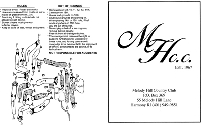 As with some of the other courses I played on my tour, this one features many dog-leg holes with blind views to the greens. One thing Melody Hills does is take the game away from long hitters. Most often they will drive through the fairways or into the trees if they try to hit high long shots. This, of course, I like. A 250-yard drive for me is only seldom achieved.