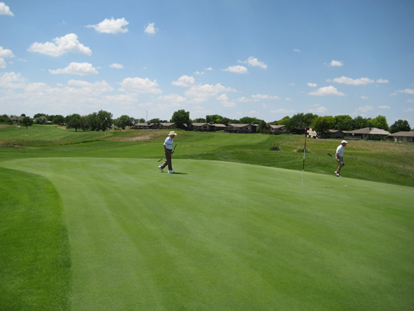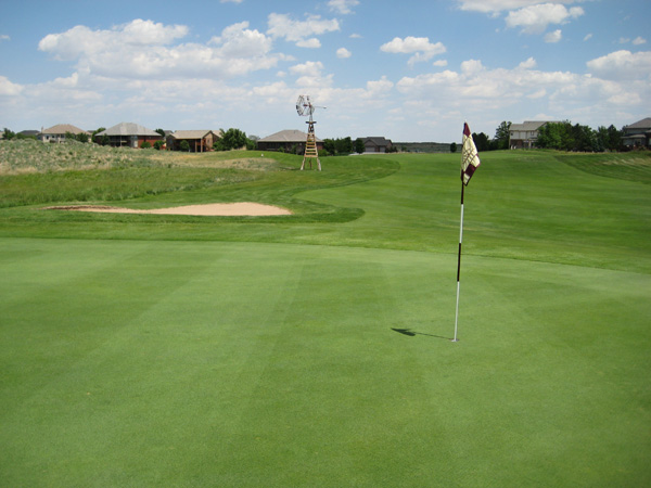 The Golf Club at Southwind is a country club and is very well maintained. Like other courses in Kansas, the extended drought has been a challenge and this cub has been up to it. A cold windy spring did not help. Since the course water is provided by wells, water was available and the course has several ponds.