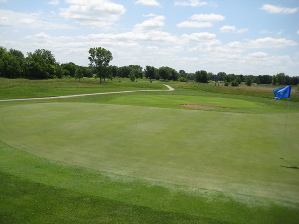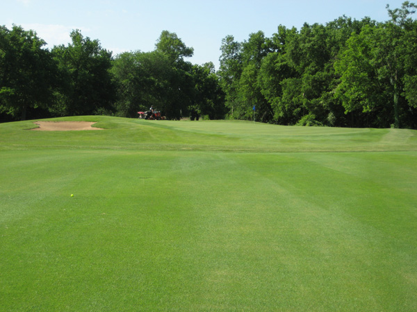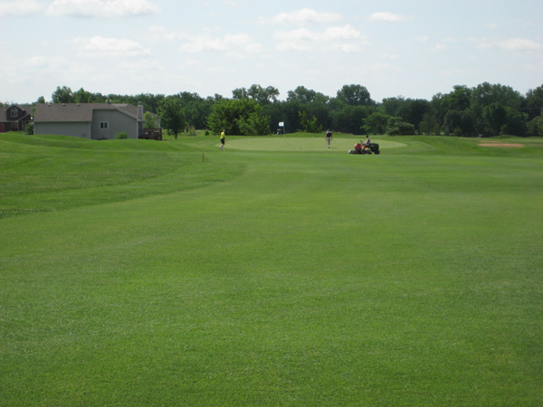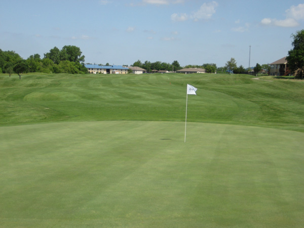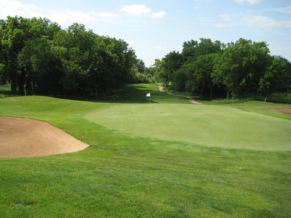 The youth program is thriving. As I teed off on number one, a bunch of elementary and junior high students were busy on the practice putting green. The course is usually open year round, but this past year the drought forced closure for several months. The course has a good reputation, with strong out-of-area visitors who come to play. Jim makes a good promotional effort to keep play up. SCROLL DOWN for a player's view of this golf course.